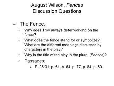 August Wilson, Fences Discussion Questions PowerPoint PPT Presentation