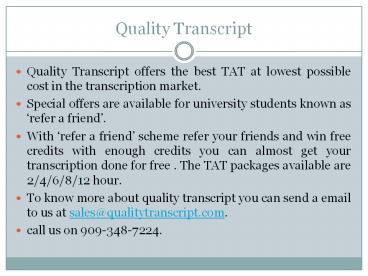 • Visit us on http//www.qualitytranscript.com.