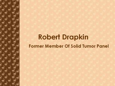 Robert Drapkin – Former Member Of Solid Tumor Panel PowerPoint PPT Presentation