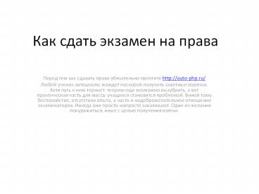 Как сдать экзамен на права PowerPoint PPT Presentation