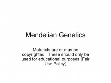 Title: Mendelian Genetics1