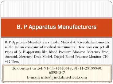 B. P Apparatus Manufacturers - Sphygmomanometer Manufacturers PowerPoint PPT Presentation
