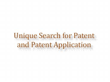Title: Unique Search for Patent and Patent Application