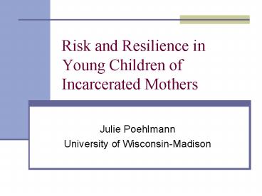 Title: Risk and Resilience in Young Children of Incarcerated Mothers
