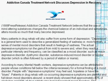 Title: Addiction Canada Treatment Network Discusses Depression In Recovery