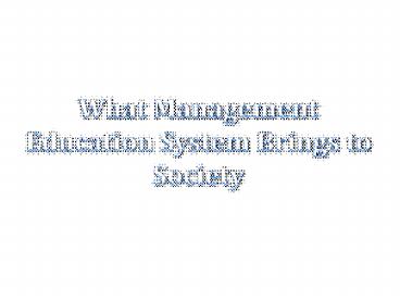 Title: What Management Education System Brings to Society