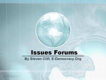 chicken Issues Forums as egg - Issues Forum approach may be adapted by anyone