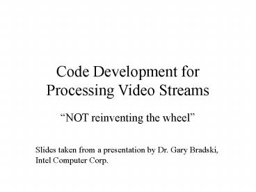 Code Development for Processing Video Streams PowerPoint PPT Presentation