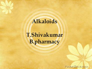 AlkaloidsT.ShivakumarB.pharmacy