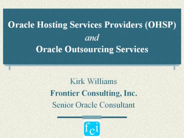 Title: Oracle Hosting Services Providers (OHSP) and Oracle
