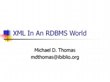 Title: XML In An RDBMS World