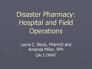 Title: Disaster Pharmacy: Hospital and Field Operations