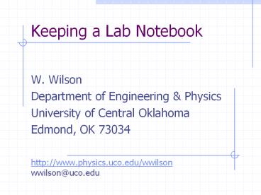 Title: Keeping a Lab Notebook