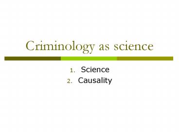 reacting to the breaking of laws - Criminology is the scientific approach to