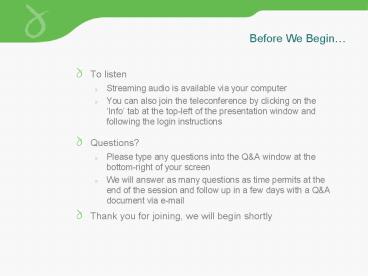 days with a QA document via e-mail - Thank you for joining, we will begin shortly