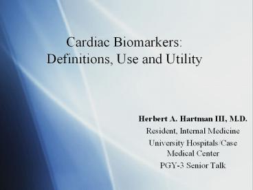 Cardiac Biomarkers: Definitions, Use and Utility? PowerPoint PPT Presentation