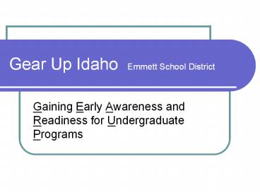 <Notice: Removed> Gear Up Idaho Emmett School District Gaining Early Awareness PowerPoint PPT Presentation