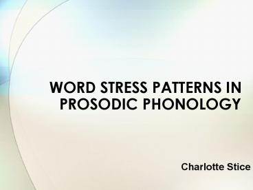 1- WORD STRESS PATTERNS IN PROSODIC PHONOLOGY