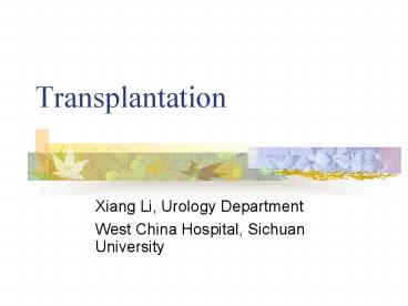 Title: Transplantation Xiang Li, Urology Department West China