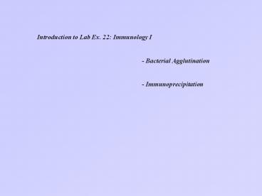 Title: Introduction to Lab Ex. 22: Immunology I