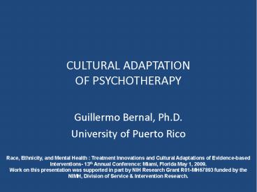 Title: CULTURAL ADAPTATION OF PSYCHOTHERAPY