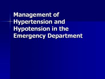 Title: Management of Hypertension and Hypotension in the Emergency Department