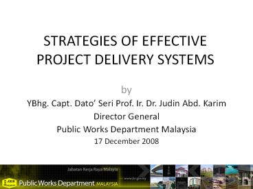 Title: STRATEGIES OF EFFECTIVE PROJECT DELIVERY SYSTEMS