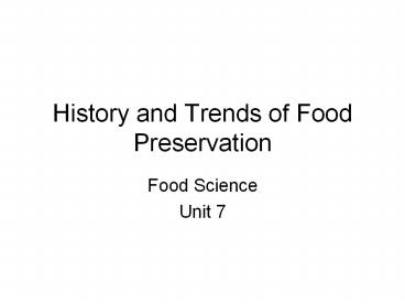 History and Trends of Food Preservation PowerPoint PPT Presentation