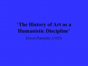 1The History of Art as a Humanistic Discipline