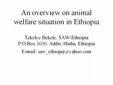 <Notice: Removed> An overview on animal welfare situation in Ethiopia Tekelye Bekele, SAW-Ethiopia P.O Box 3630, Addis Ababa, Ethiopia E-mail: saw_ethiopia@yahoo.com PowerPoint PPT Presentation