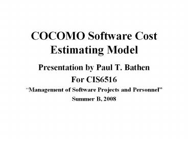 <Notice: Removed> COCOMO Software Cost Estimating Model PowerPoint PPT Presentation