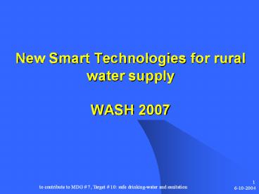 <Notice: Removed> New Smart Technologies for rural water supply WASH 2007 PowerPoint PPT Presentation