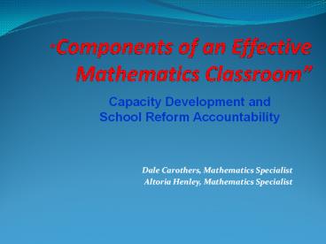 components of an effective classroom. - Teachers will be able to plan how to adapt the