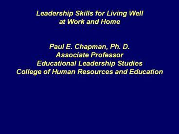 Title: Leadership Skills for Living Well
