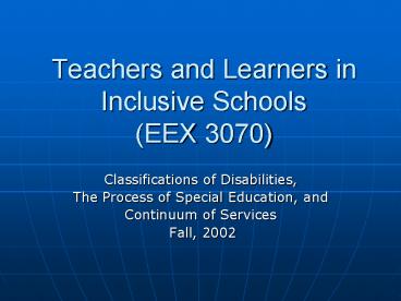 Teachers and Learners in Inclusive Schools EEX 3070 PowerPoint PPT Presentation