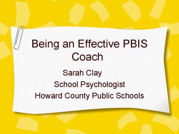 Being an Effective PBIS Coach PowerPoint PPT Presentation