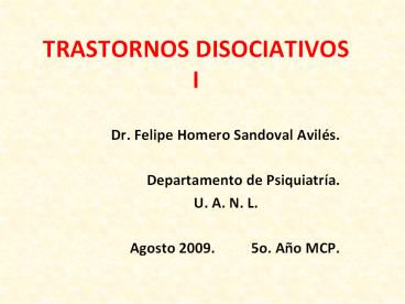 <Notice: Removed> TRASTORNOS DISOCIATIVOS I PowerPoint PPT Presentation