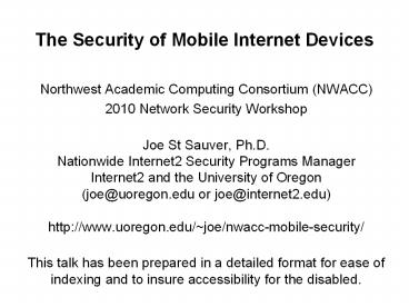 <Notice: Removed> The Security of Mobile Internet Devices PowerPoint PPT Presentation