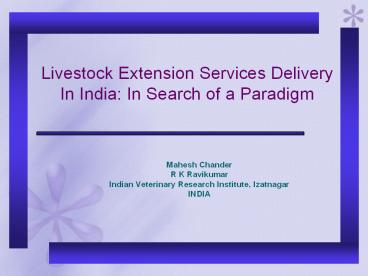 Title: Livestock Extension Services Delivery In India: In Search of