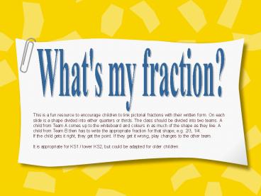 <Notice: Removed> What's my fraction? PowerPoint PPT Presentation