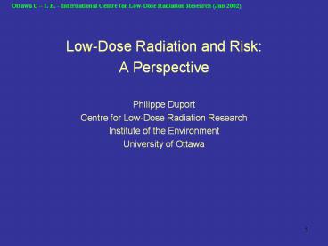 Title: Low-Dose Radiation and Risk