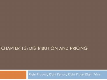 Title: Chapter 13: DISTRIBUTION AND PRICING
