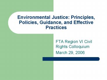 Title: Environmental Justice: Principles, Policies, Guidance, and Effective Practices