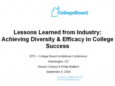 Title: Lessons Learned from Industry: Achieving Diversity & Efficacy in College Success