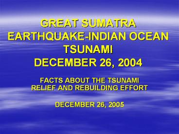 GREAT SUMATRA EARTHQUAKE-INDIAN OCEAN TSUNAMI DECEMBER 26, 2004 PowerPoint PPT Presentation