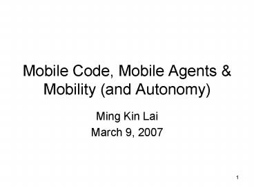 <Notice: Removed> Mobile Code, Mobile Agents PowerPoint PPT Presentation