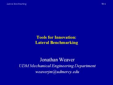 Tools for Innovation: Lateral Benchmarking PowerPoint PPT Presentation