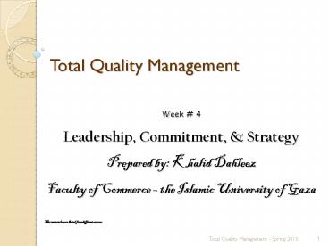 <Notice: Removed> Total Quality Management PowerPoint PPT Presentation