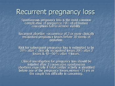 Recurrent pregnancy loss PowerPoint PPT Presentation