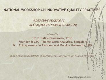 1NATIONAL WORKSHOP ON INNOVATIVE QUALITY PRACTICES